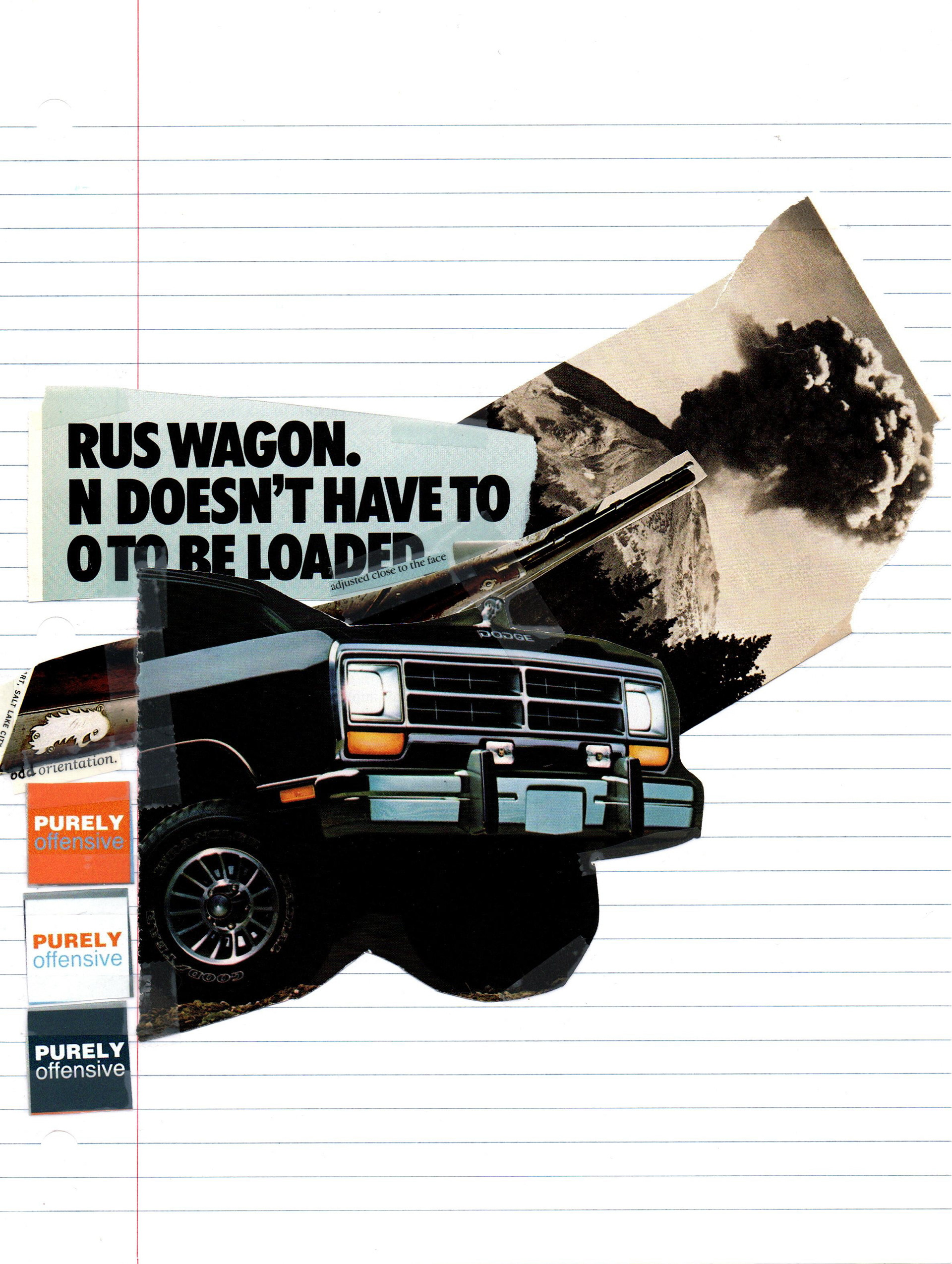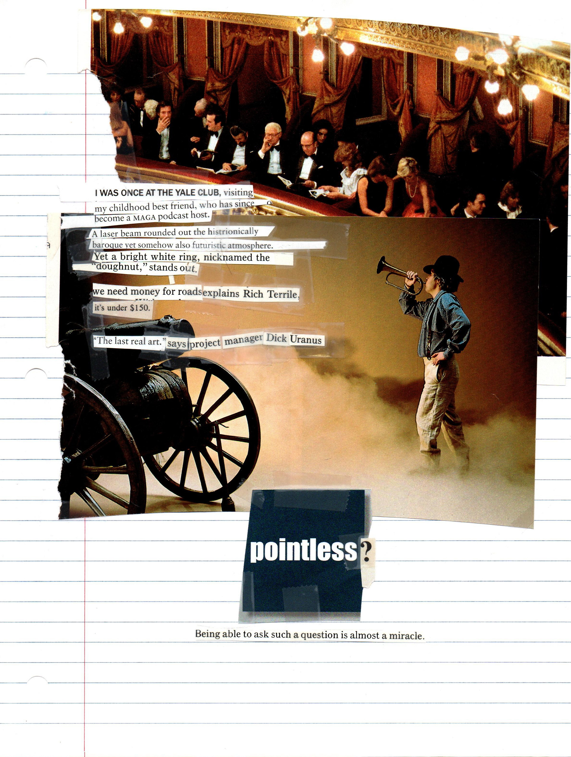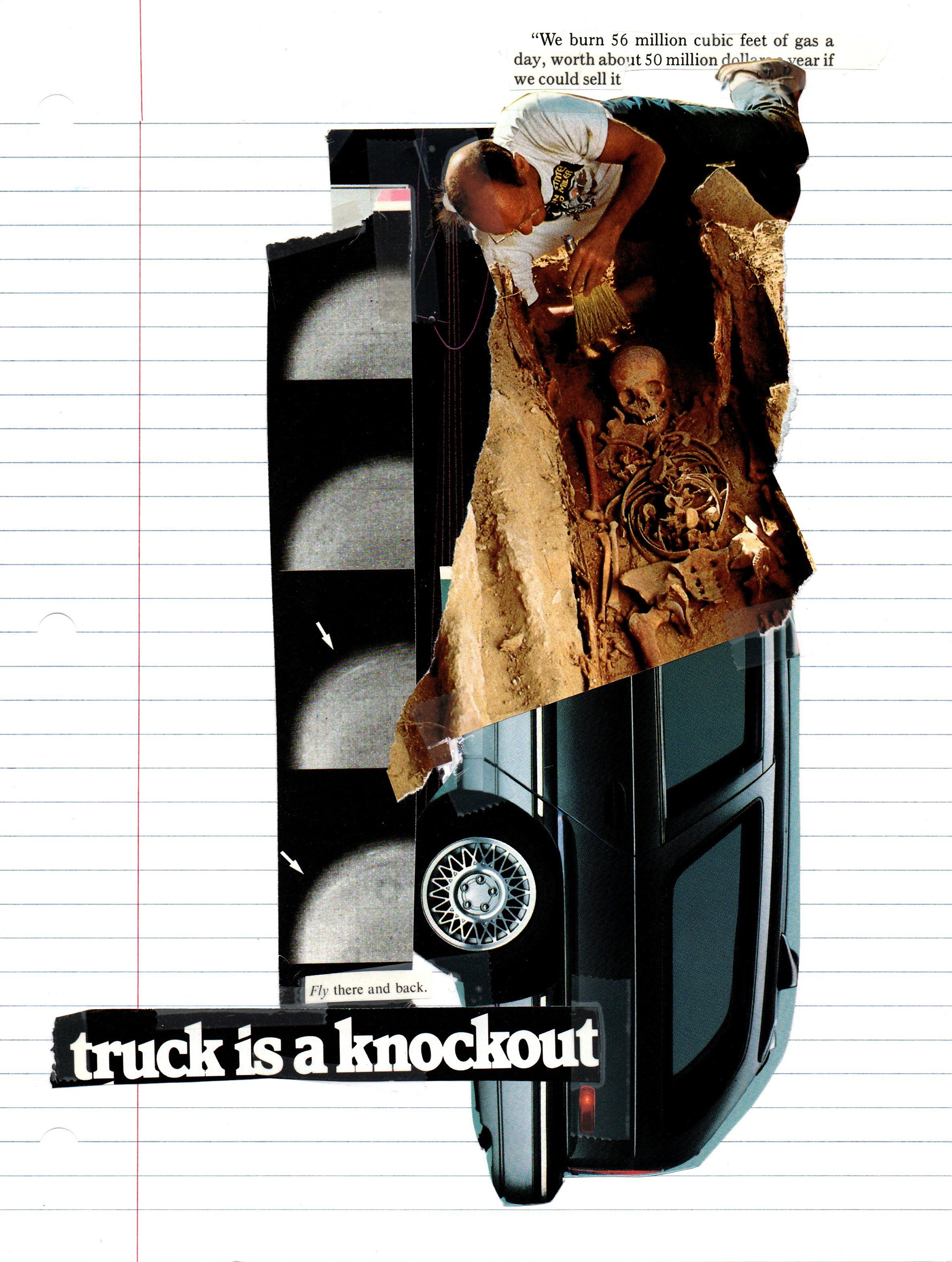 Magazine images, graphite, and Scotch tape on lined paper. Under 8.5x11in