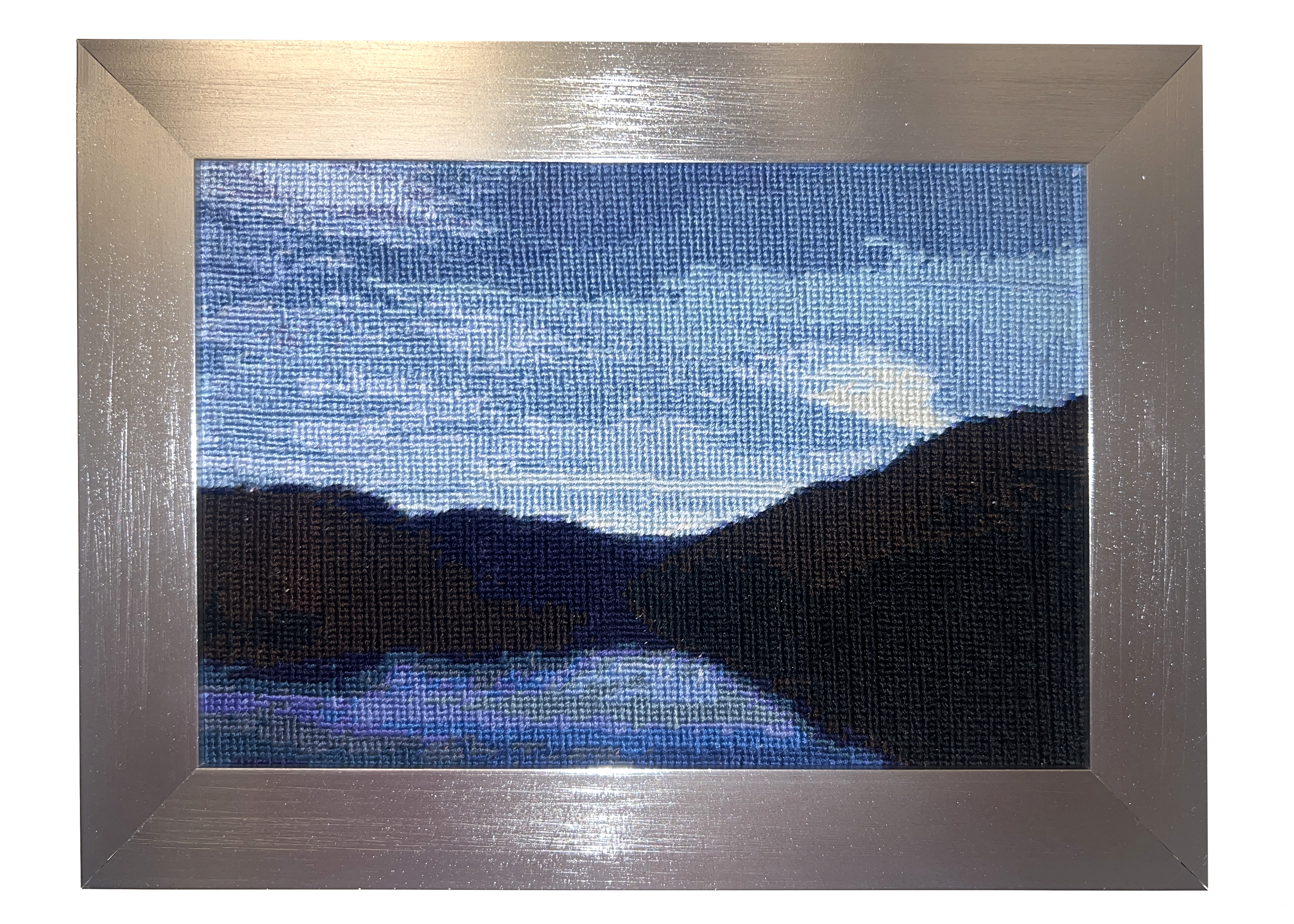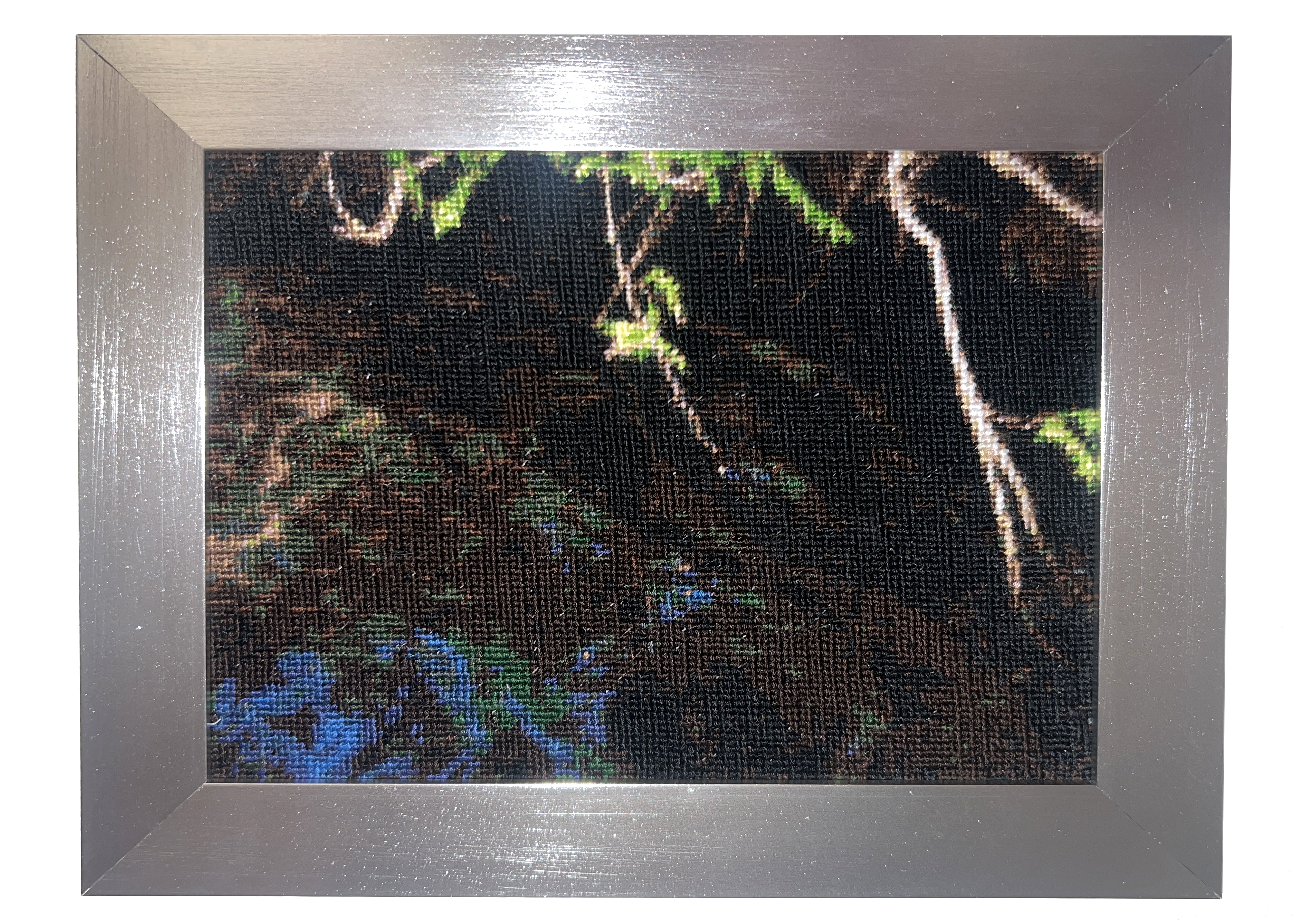 Cross stitch in metal frames, approx 9x7in each.